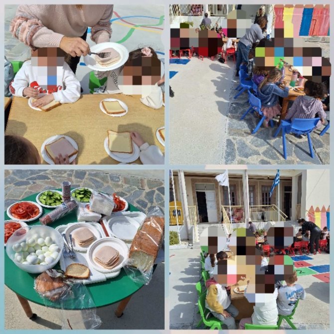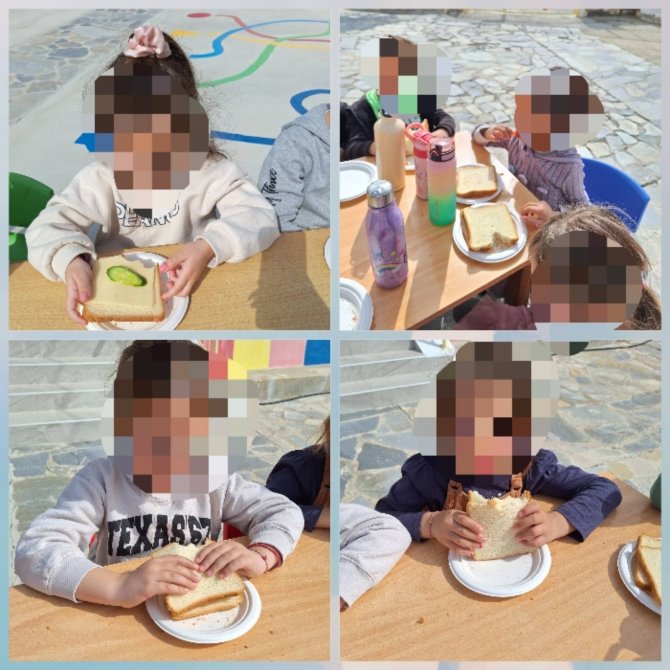 Στη συνέχεια ακολούθησε υγιεινό πρόγευμα όπου όλα τα προϊόντα ήταν προσφορά της υπεραγοράς Philippos στην Πέγεια. Τα παιδιά έφαγαν το τοστ τους και ήπιαν φρέσκο γάλα προσφορά της εταιρείας Αχναγάλ.