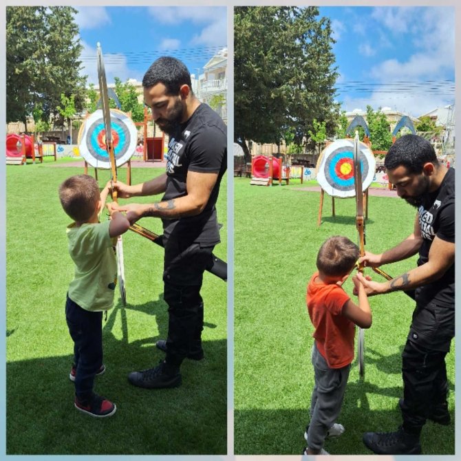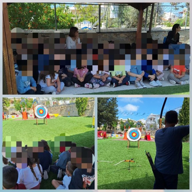 Τα παιδιά είχαν την χαρά αλλά και την ευκαιρία να επιδείξουν τις ικανότητές στο μάθημα της τοξοβολίας ρίχνοντας τα βέλη για να πετύχουν τον στόχο. Εξασκήθηκαν στην μέθοδο απάτσι!